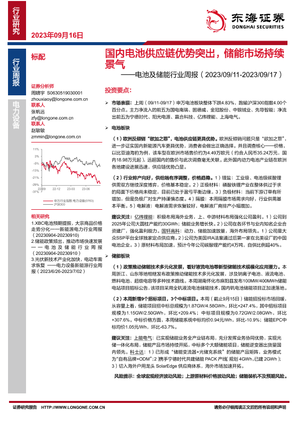 【东海证券】【20230916】国内电池供应链优势突出,储能市场持续景气-12页