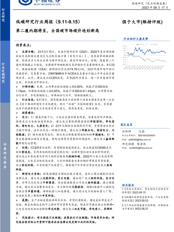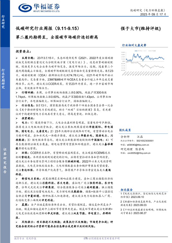 【华福证券】【20230917】低碳研究行业周报:第二履约期将至,全国碳市场碳价迭创新高-18页