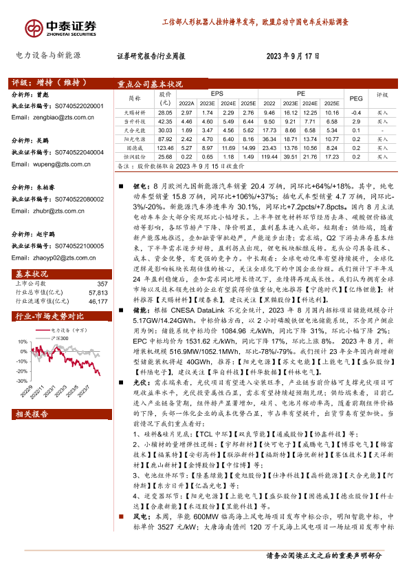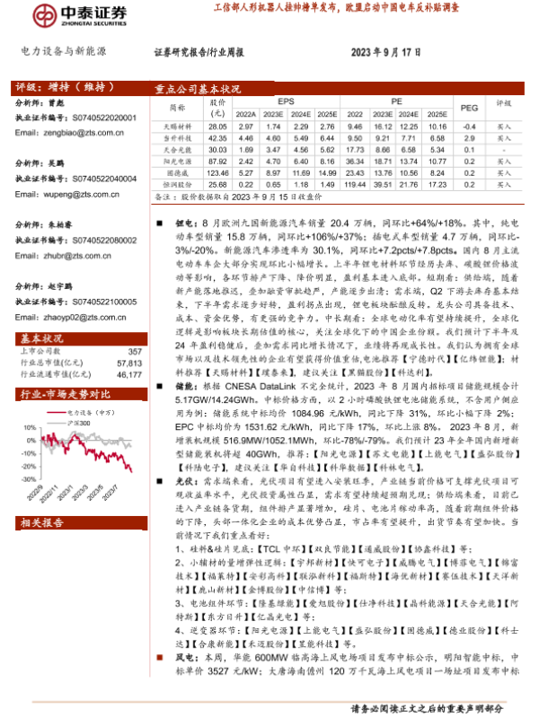 【中泰证券】【20230917】电力设备与新能源行业周报:工信部人形机器人挂帅榜单发布,欧盟启动中国电车反补贴调查-31页