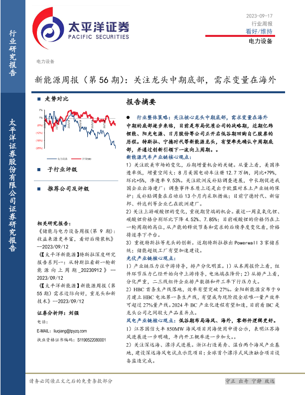 【太平洋证券】【20230917】20230917-太平洋-新能源周报(第56期):关注龙头中期底部,需求变量在海外-34页