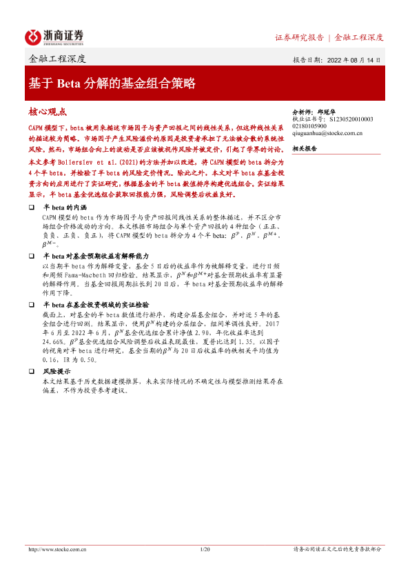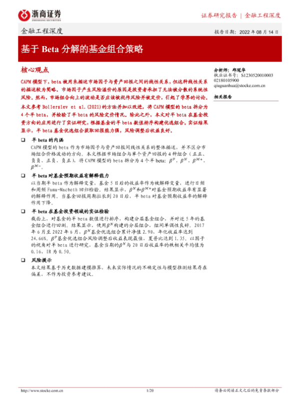【浙商证券】【20220814】基于Beta分解的基金组合策略-20页