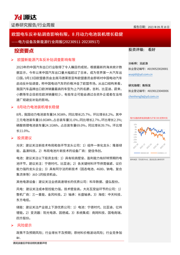【源达信息】【20230918】欧盟电车反补贴调查影响有限,8月动力电池装机增长稳健-10页