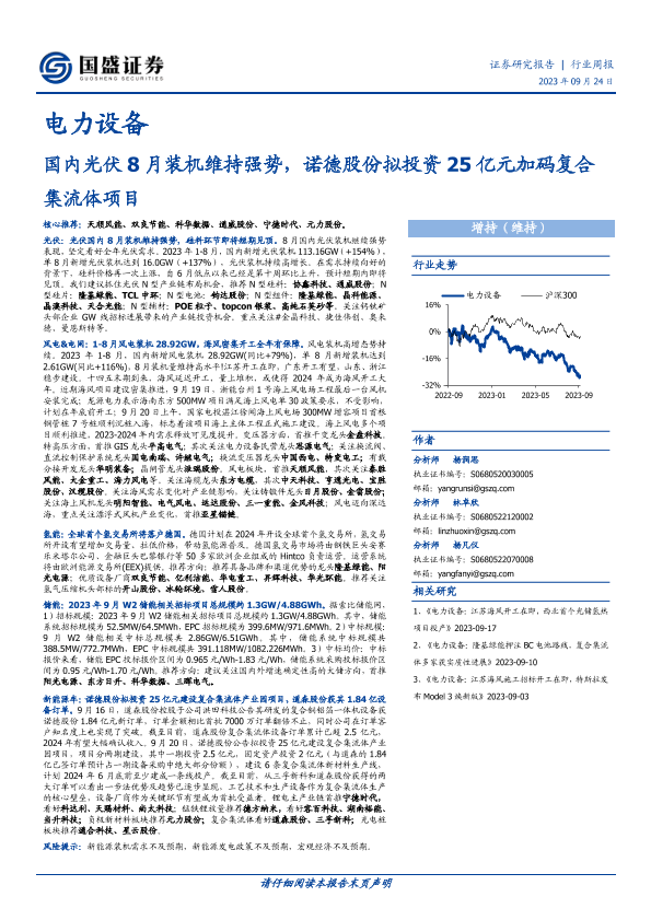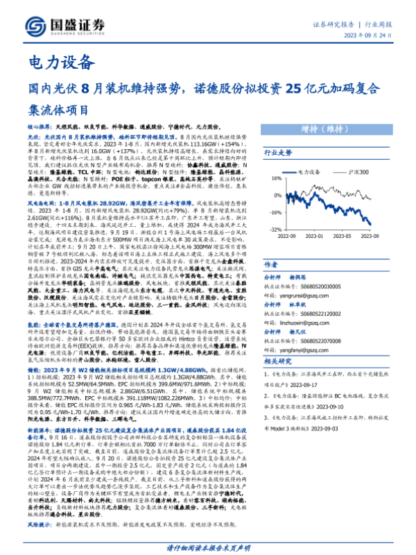 【国盛证券】【20230924】电力设备行业周报:国内光伏8月装机维持强势,诺德股份拟投资25亿元加码复合集流体项目-19页