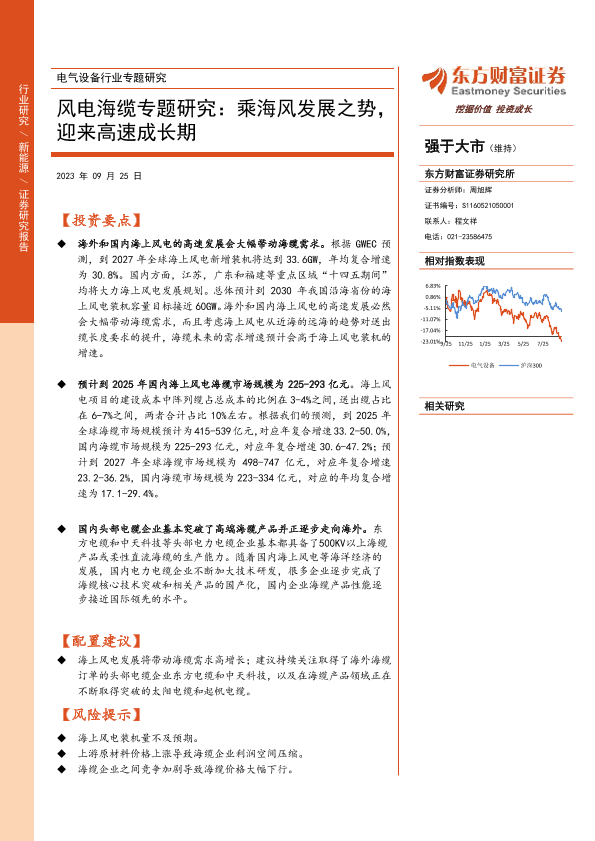 【东方财富证券】【20230925】风电海缆专题研究:乘海风发展之势,迎来高速成长期-22页