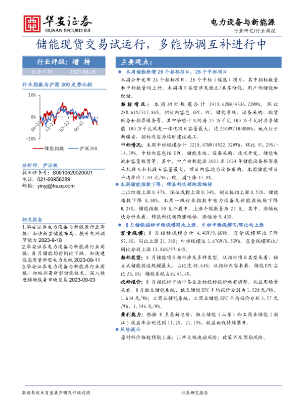 【华安证券】【20230925】20230925-华安证券-电力设备与新能源行业周报:储能现货交易试运行,多能协调互补进行中-17页