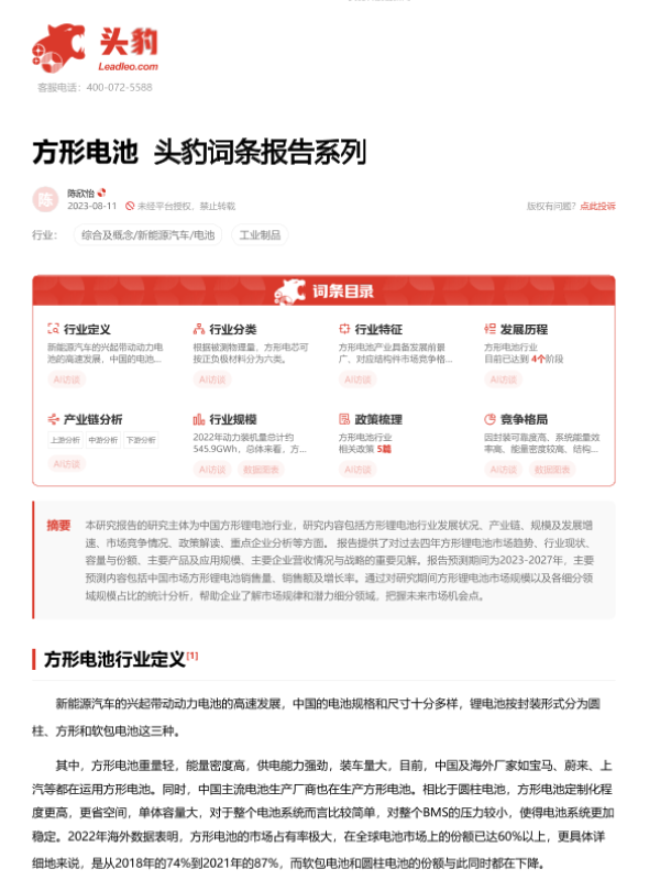 【头豹研究院】【20230811】方形电池 头豹词条报告系列-16页
