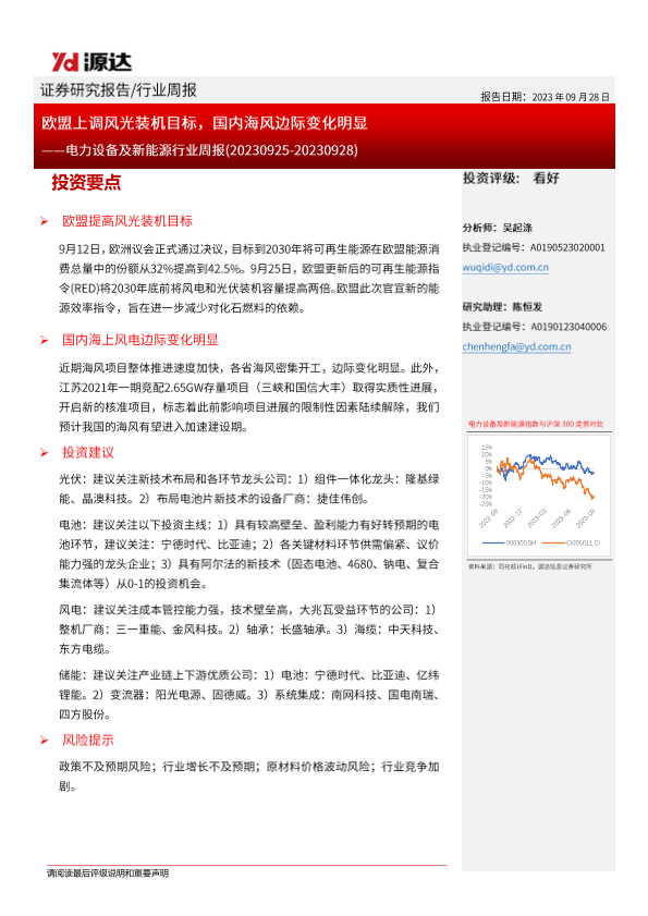 【源达信息】【20230928】电力设备及新能源行业周报:欧盟上调风光装机目标,国内海风边际变化明显-10页