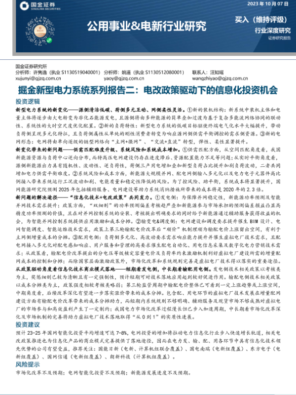 【国金证券】【20231007】掘金新型电力系统系列报告二:电改政策驱动下的信息化投资机会-36页