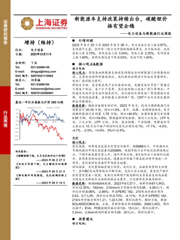 【上海证券】【20231011】20231011-上海证券-电力设备与新能源行业周报:新能源车支持政策持续出台,碳酸锂价格有望企稳-26页