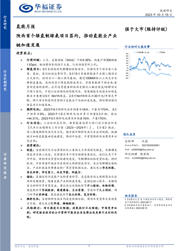 【华福证券】【20231015】20231015-华福证券-氢能月报:陕西首个绿氢制绿氨项目签约,推动氢能全产业链加速发展-10页