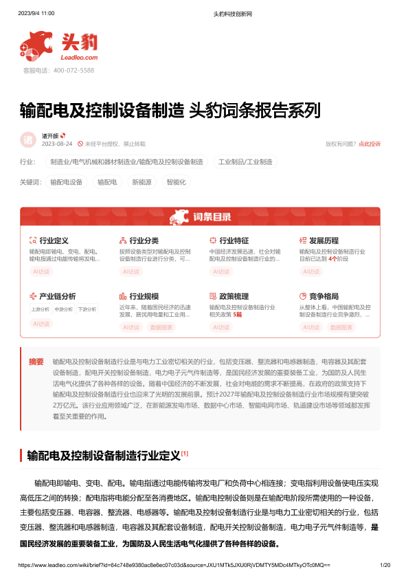 【头豹研究院】【20230824】输配电及控制设备制造 头豹词条报告系列-20页