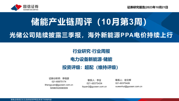 【国信证券】【20231021】储能产业链周评(10月第3周):光储公司陆续披露三季报,海外新能源PPA电价持续上行-25页