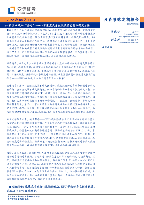 【安信证券】【20220817】外资在A股的“择时”-----外资配置交易框架及买卖特征研究总论-58页