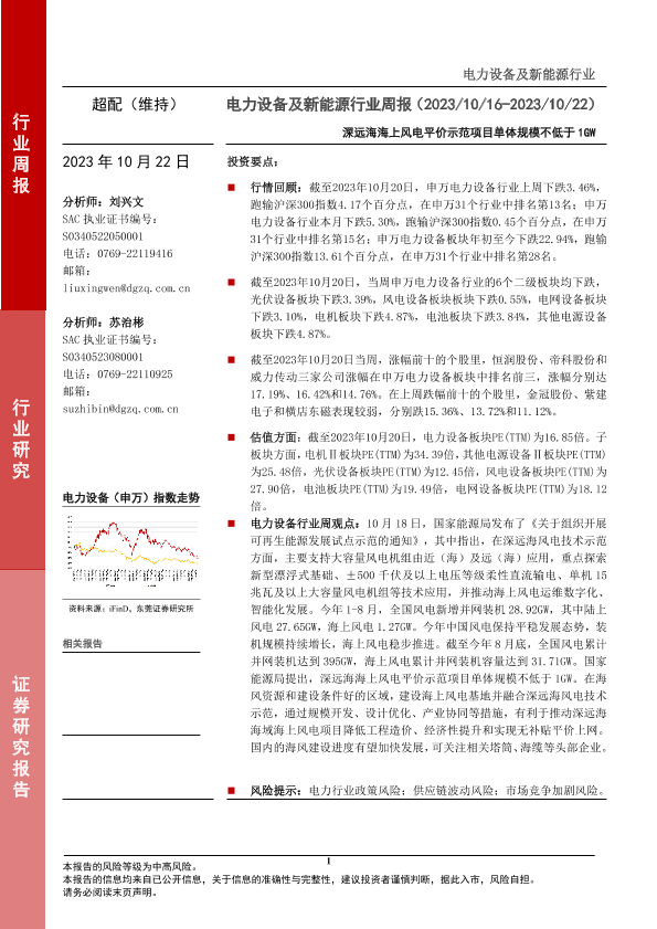 【东莞证券】【20231022】电力设备及新能源行业周报:深远海海上风电平价示范项目单体规模不低于1GW-13页