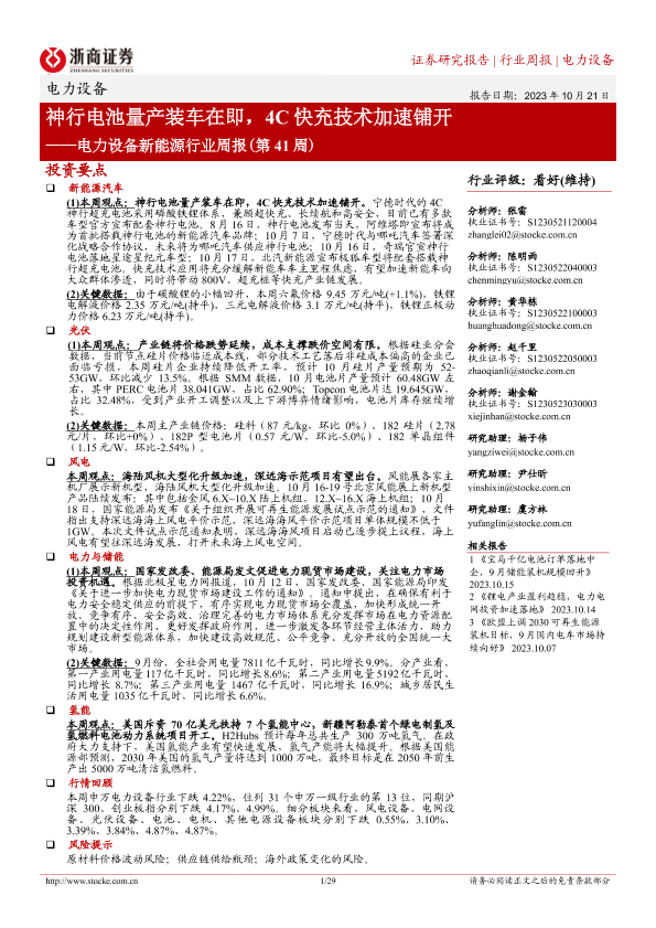 【浙商证券】【20231021】电力设备新能源行业周报(第41周):神行电池量产装车在即,4C快充技术加速铺开-29页