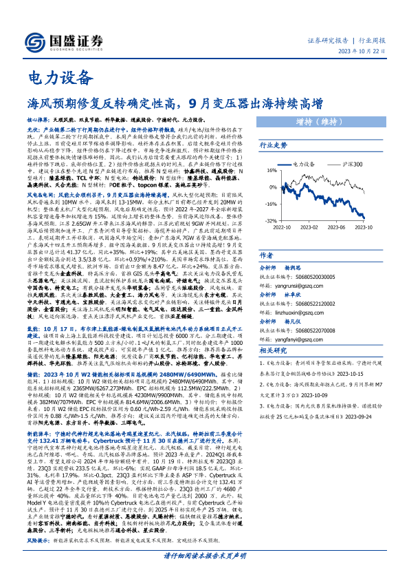 【国盛证券】【20231022】电力设备行业周报:海风预期修复反转确定性高,9月变压器出海持续高增-21页