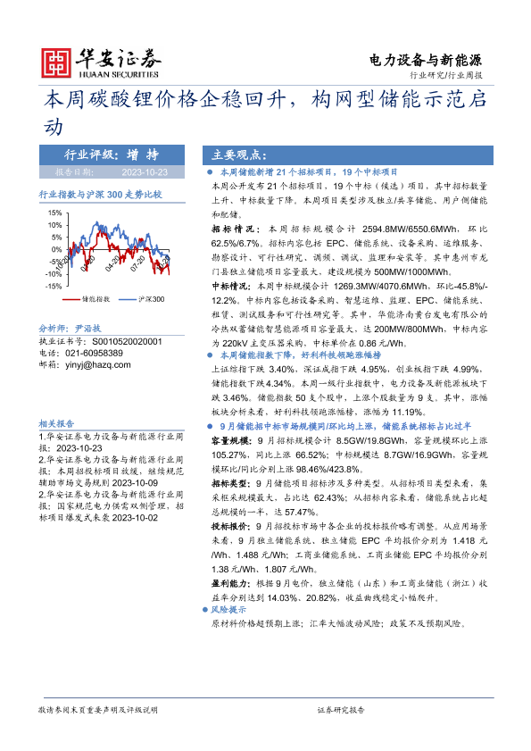 【华安证券】【20231023】20231023-华安证券-电力设备与新能源行业周报:本周碳酸锂价格企稳回升,构网型储能示范启动-18页
