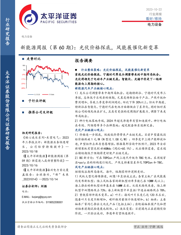 【太平洋证券】【20231022】20231022-太平洋-新能源周报(第60期):光伏价格探底,风能展催化新变革-31页