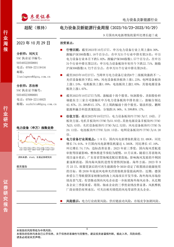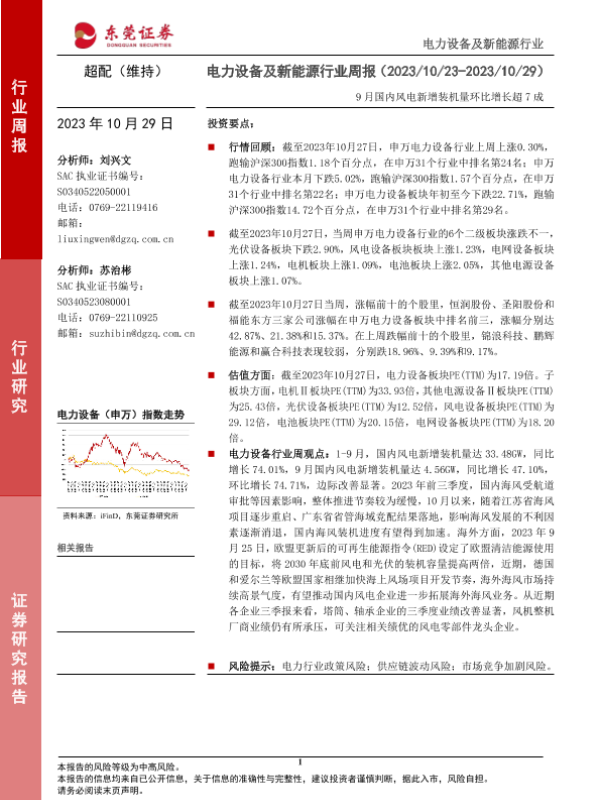 【东莞证券】【20231029】电力设备及新能源行业周报:9月国内风电新增装机量环比增长超7成-13页