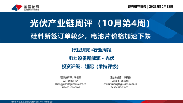 【国信证券】【20231028】光伏产业链周评(10月第4周):硅料新签订单较少,电池片价格加速下跌-16页