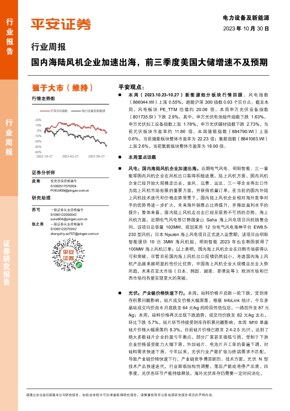 【平安证券】【20231030】电力设备及新能源行业周报:国内海陆风机企业加速出海,前三季度美国大储增速不及预期-24页
