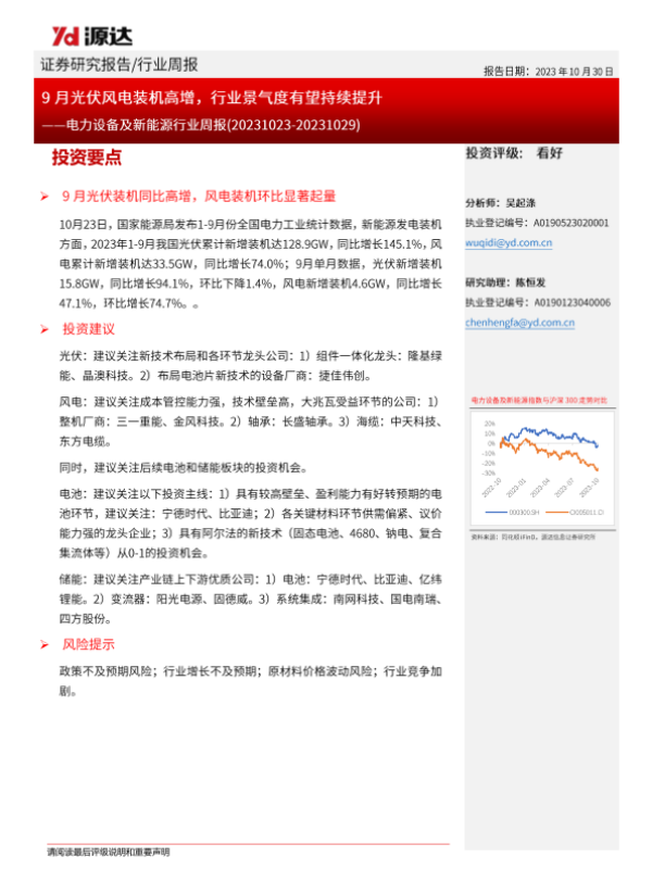 【源达信息】【20231030】20231030-源达信息-电力设备及新能源行业周报:9月光伏风电装机高增,行业景气度有望持续提升-11页