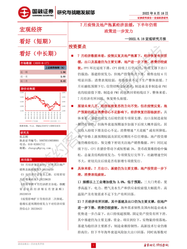 【国融证券】【20220818】宏观研究月报:7月疫情及地产拖累经济放缓,下半年仍需政策进一步发力-26页