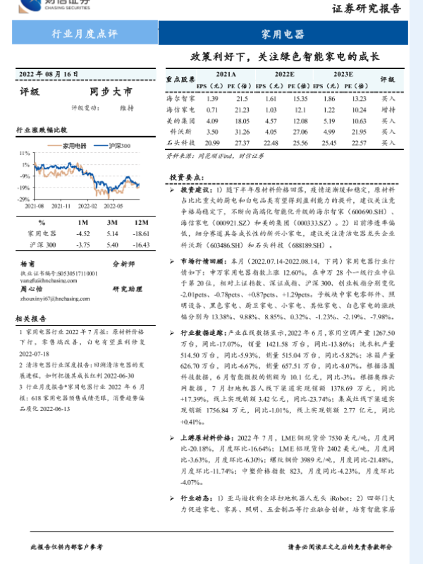 【财信证券】【20220816】家用电器行业月度点评:政策利好下,关注绿色智能家电的成长-15页