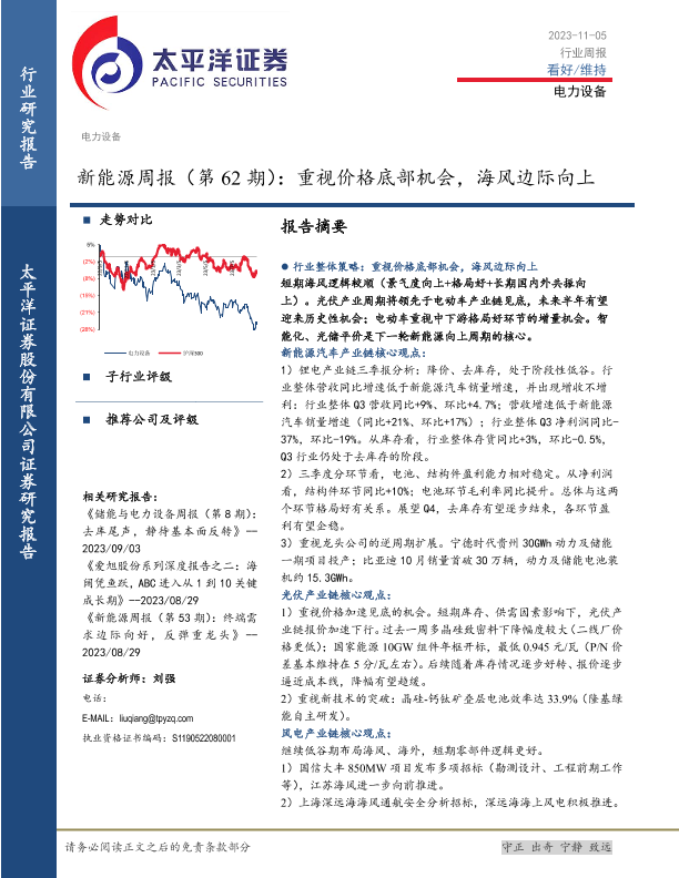【太平洋证券】【20231105】20231105-太平洋-新能源周报(第62期):重视价格底部机会,海风边际向上-34页
