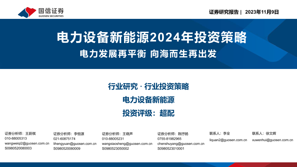 【国信证券】【20231109】电力设备新能源2024年投资策略:电力发展再平衡 向海而生再出发-41页