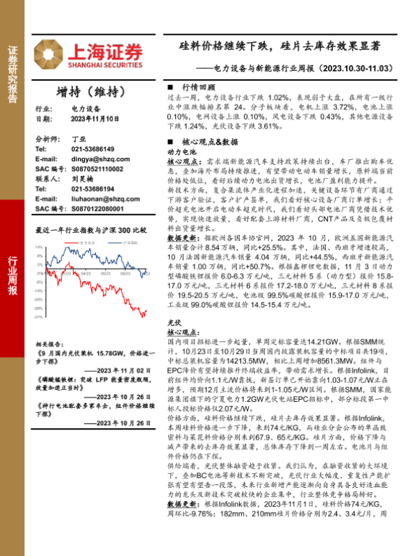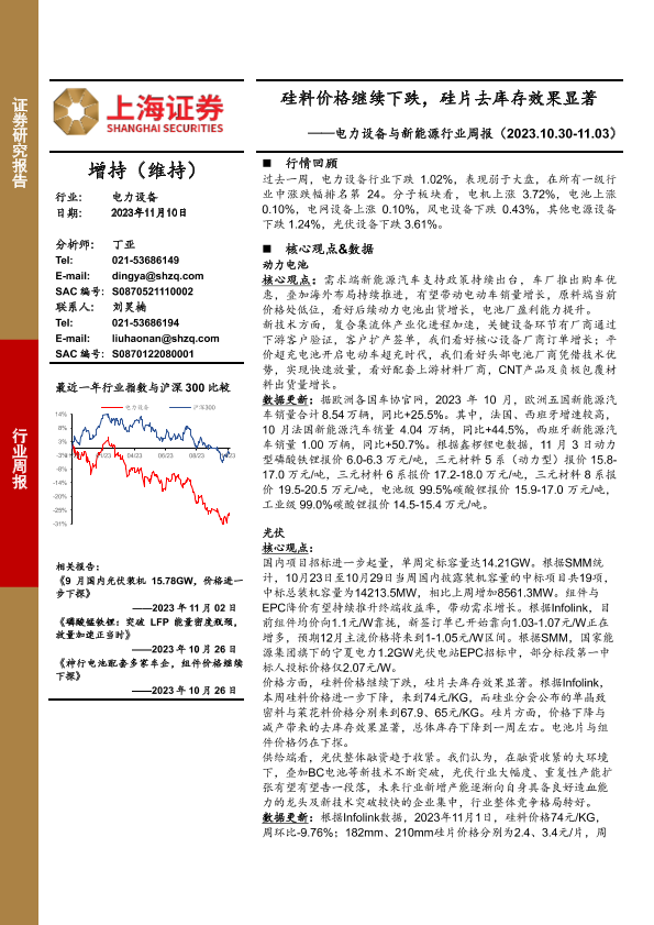 【上海证券】【20231110】20231110-上海证券-电力设备与新能源行业周报:硅料价格继续下跌,硅片去库存效果显著-25页