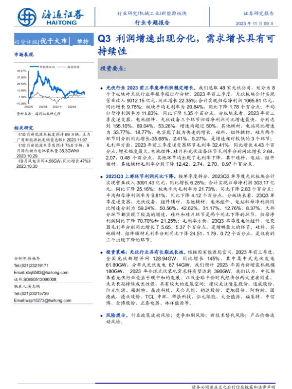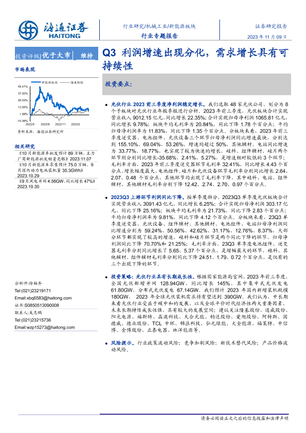 【海通证券】【20231109】20231109-海通证券-新能源板块行业专题报告:Q3利润增速出现分化,需求增长具有可持续性-16页