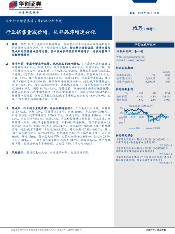 【华创证券】【20220817】家电行业增量赛道7月数据分析专题:行业销售量减价增,头部品牌增速分化-23页
