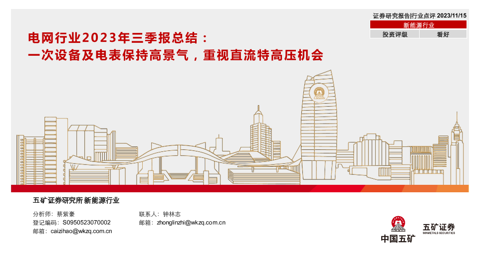 【五矿证券】【20231115】电网行业2023年三季报总结:一次设备及电表保持高景气,重视直流特高压机会-18页