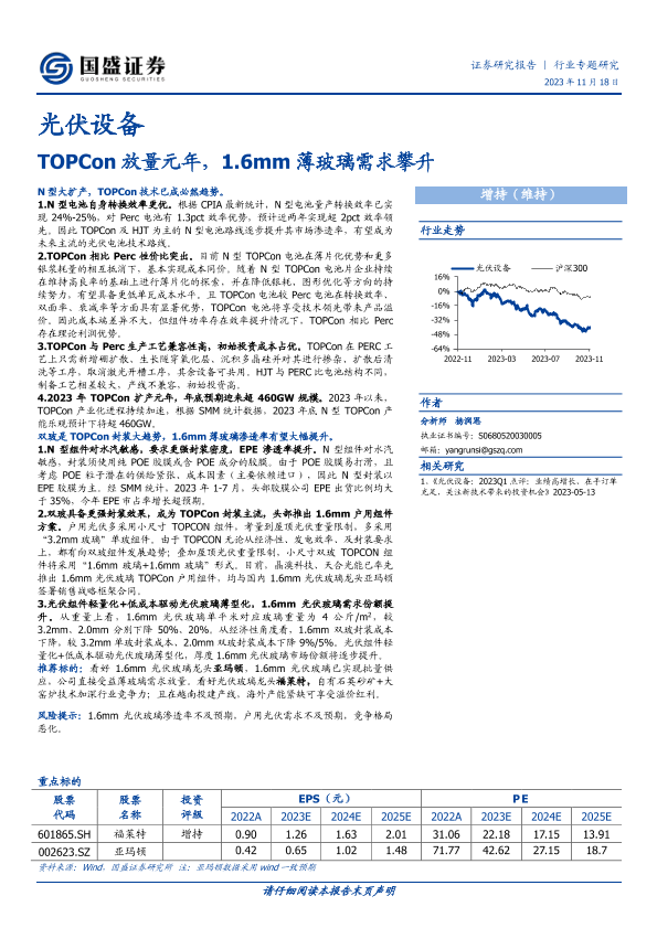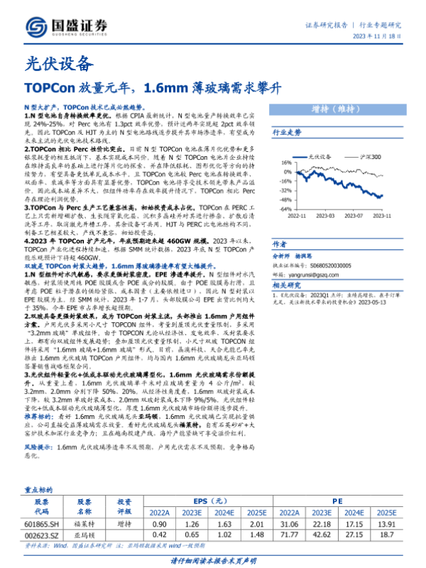 【国盛证券】【20231118】光伏设备行业专题研究:TOPCon放量元年,1.6mm薄玻璃需求攀升-18页