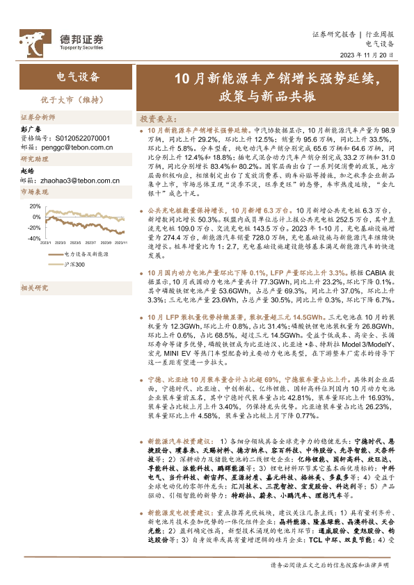 【德邦证券】【20231120】20231120-德邦证券-电气设备行业周报:10月新能源车产销增长强势延续,政策与新品共振-13页