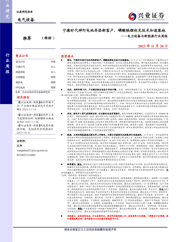 【兴业证券】【20231120】宁德时代神行电池再添新客户,磷酸铁锂快充技术加速落地-19页
