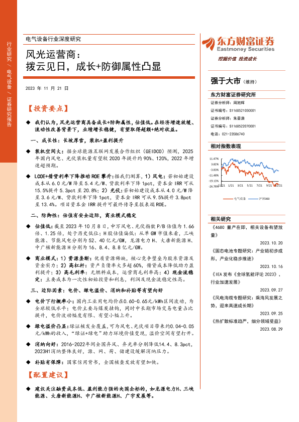 【东方财富证券】【20231121】电气设备行业深度研究:风光运营商:拨云见日,成长+防御属性凸显-23页
