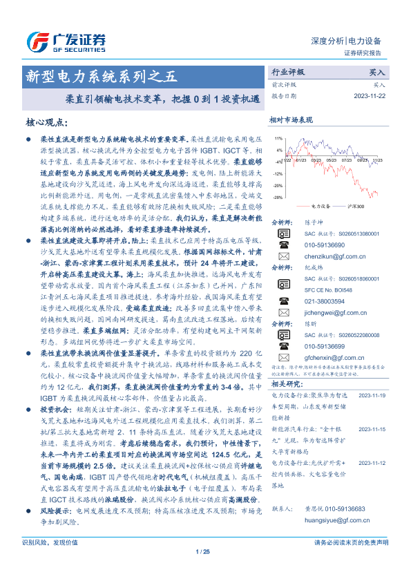 【广发证券】【20231122】新型电力系统系列之五:柔直引领输电技术变革,把握0到1投资机遇-25页