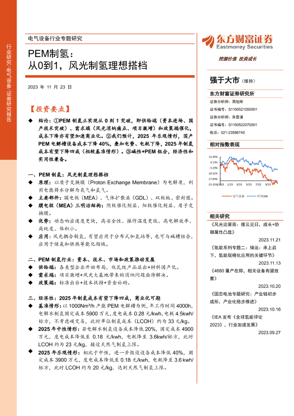 【东方财富证券】【20231123】电气设备行业专题研究:PEM制氢:从0到1,风光制氢理想搭档-24页