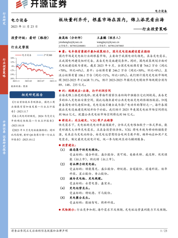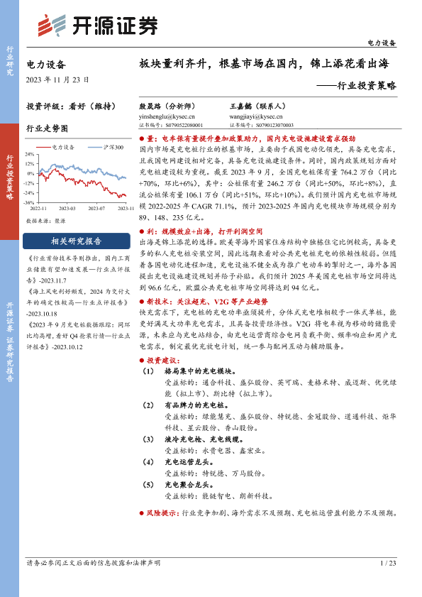 【开源证券】【20231123】电力设备行业投资策略:板块量利齐升,根基市场在国内,锦上添花看出海-23页