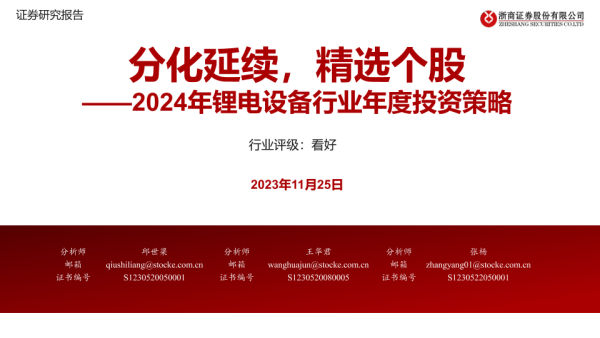 【浙商证券】【20231125】2024年锂电设备行业年度投资策略:分化延续,精选个股-36页