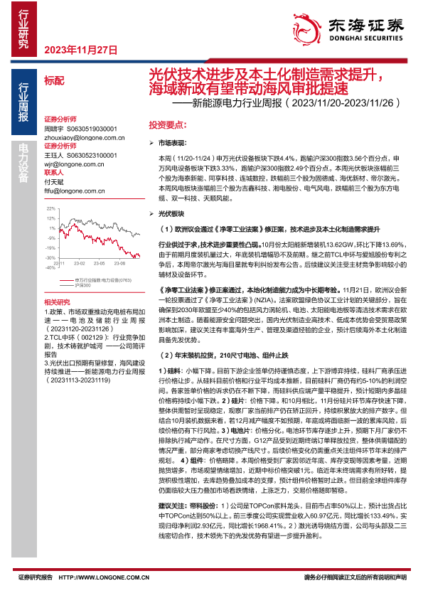 【东海证券】【20231127】光伏技术进步及本土化制造需求提升,海域新政有望带动海风审批提速-18页
