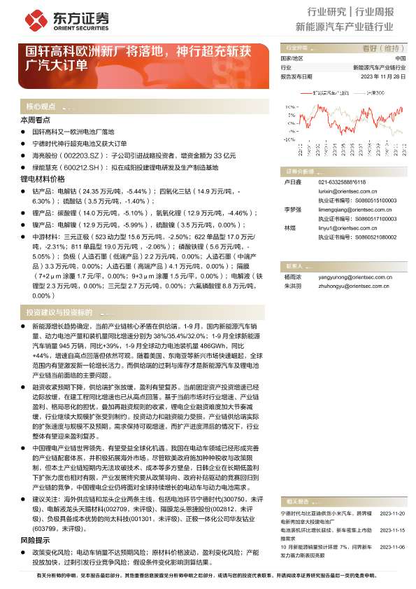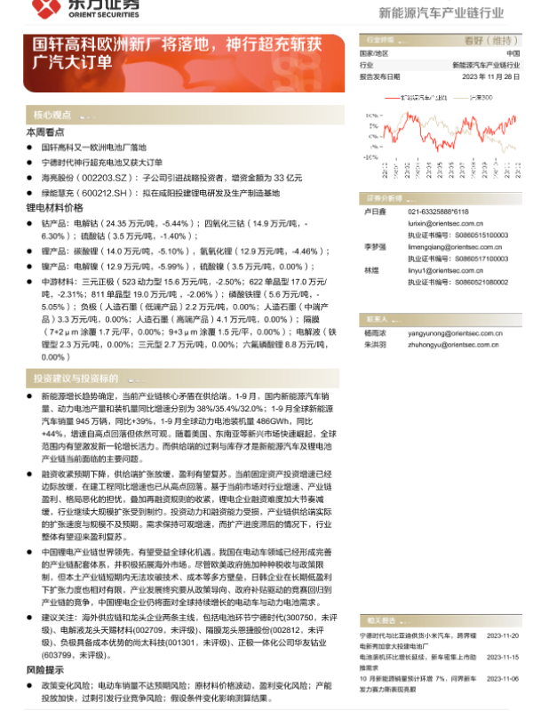 【东方证券】【20231128】20231128-东方证券-新能源汽车产业链行业行业周报:国轩高科欧洲新厂将落地,神行超充斩获广汽大订单-13页