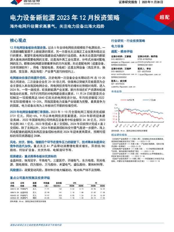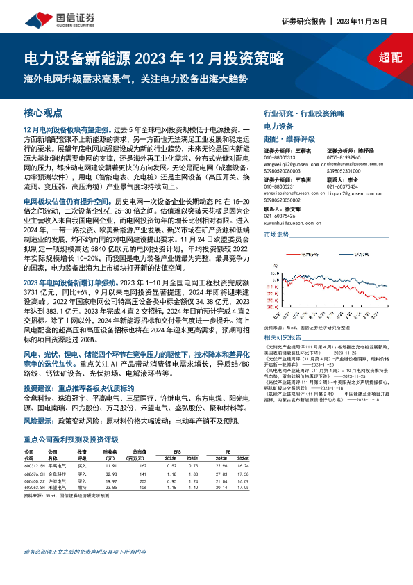【国信证券】【20231128】电力设备新能源2023年12月投资策略:海外电网升级需求高景气,关注电力设备出海大趋势-22页