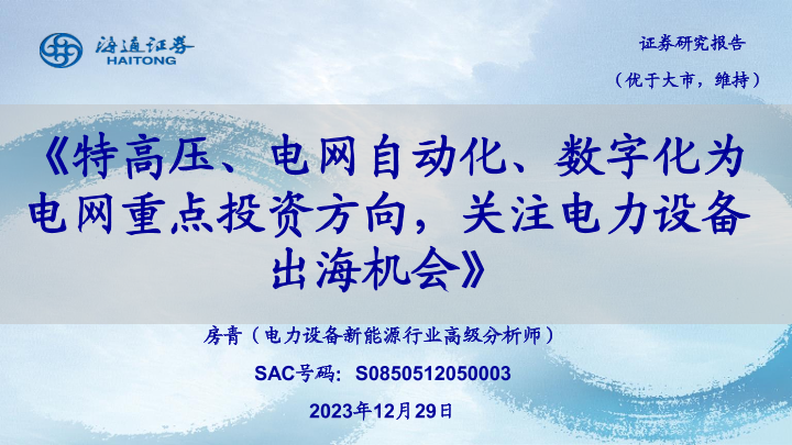 【海通证券】【20231229】特高压、电网自动化、数字化为电网重点投资方向,关注电力设备出海机会-25页