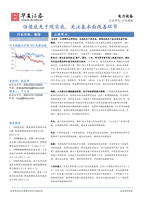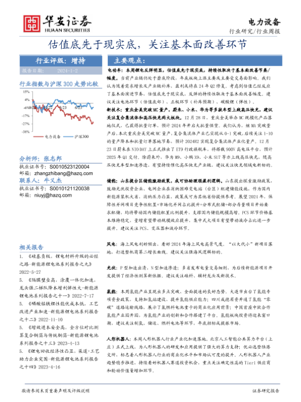 【华安证券】【20240102】20240101-华安证券-电力设备行业周报:估值底先于现实底,关注基本面改善环节-25页