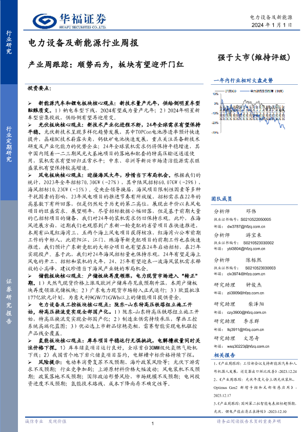 【华福证券】【20240101】电力设备及新能源行业周报:产业周跟踪:顺势而为,板块有望迎开门红-15页