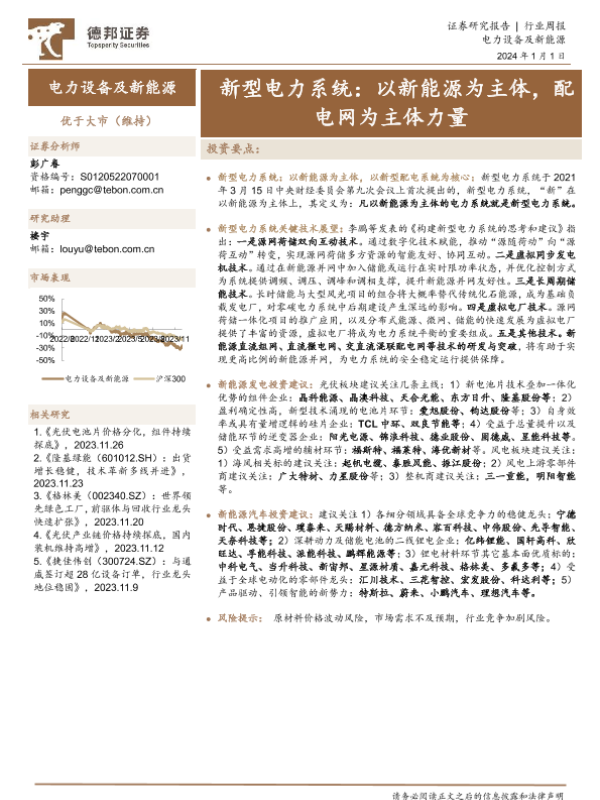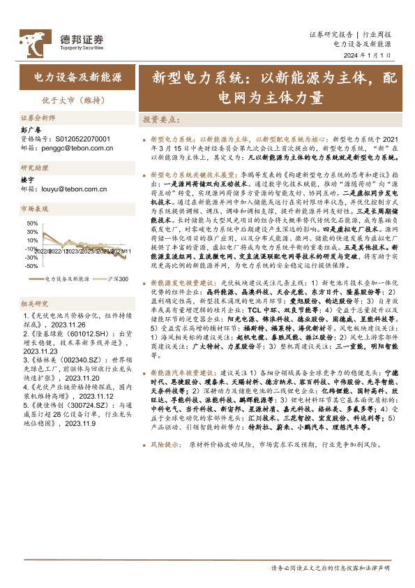 【德邦证券】【20240101】新型电力系统:以新能源为主体,配电网为主体力量-15页