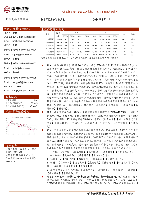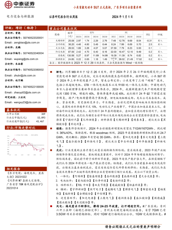 【中泰证券】【20240101】电力设备与新能源行业周报:小米首款电动车SU7正式亮相,广东多项目全容量并网-31页